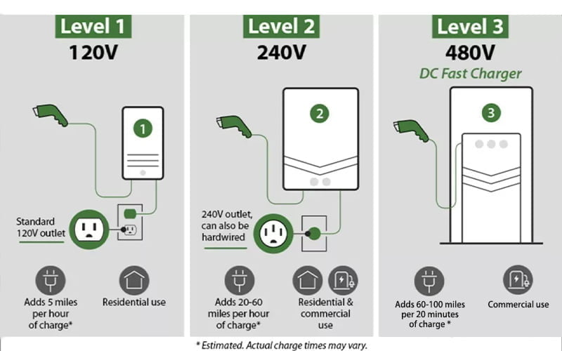 Different classifications of EV charging in the US