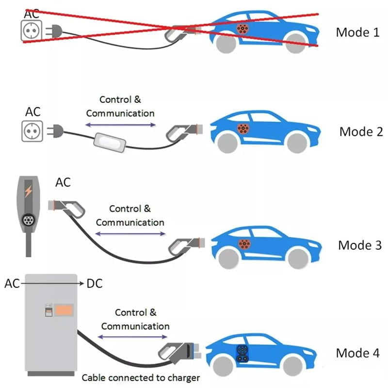 EV owners in Europe may have heard of the Mode 1/2/3/4 classification, which indicates different levels of EV charging capability. This classification is based on whether the EV is able to communicate with the EV chargers.