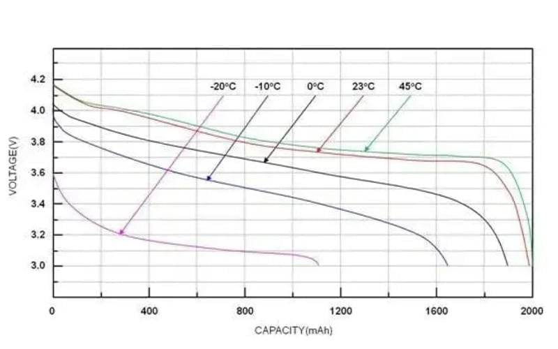 The ideal working temperature for electric vehicles is around 20°C. However, when it drops below 5°C, your battery’s performance will suffer – its resistance increases and available capacity decreases due to the sticky electrolyte and heavy polarization of the negative electrode material. This could lead to a significant reduction in the discharge rate.